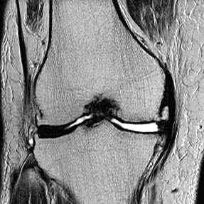 大腿骨内側に突発性骨壊死があり、半月板も外周へ逸脱
