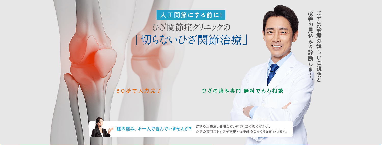 ひざの専門医が担当/手術・入院不要/症例実績44,100件突破※ ひざの専門医が担当/手術・入院不要/症例実績44,100件突破※